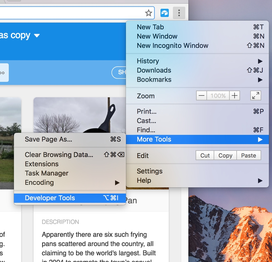 Alternatively, you can use the Chrome menu in the browser window, select the option "More Tools," and then select "Developer Tools."
